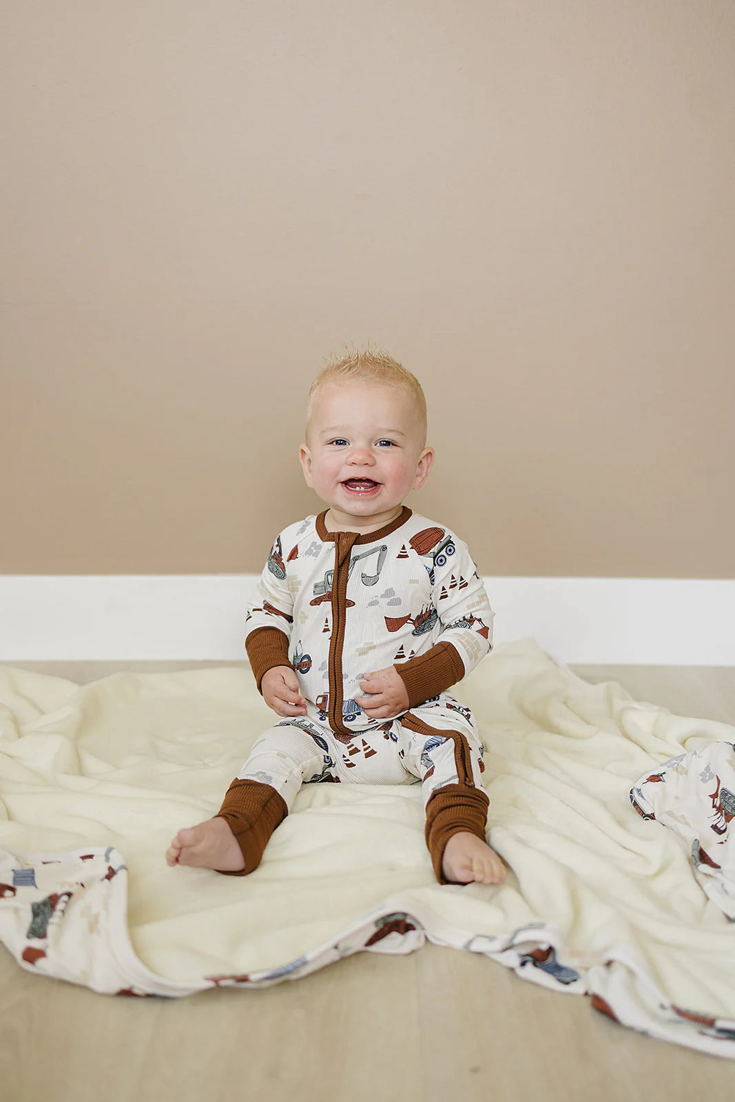 Gear up your little one for adventure with our Construction Trucks Bamboo Zipper, designed for newborns to 18 months. Crafted from ultra-soft, eco-friendly bamboo fabric, this onesie features a fun construction truck pattern, perfect for budding builders. With foldable mittens and feet, this cozy zipper grows with your baby, while foot grips (on sizes 6-12 months and up) offer added stability. The double zipper allows for quick and easy diaper changes, making this both practical and comfortable for everyday wear.